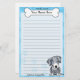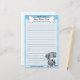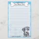 Artigos de papelaria coloridos do cão do leopardo de Kawaii Louisiana Catahoula com um cão dos desenhos animados no canto direito mais baixo. A parcela superior pode imediatamente ser personalizada com seu nome dentro do osso grande do cachorrinho. O fundo da beira e do papel é azul.