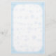 Estes artigos de papelaria caracterizam um fundo de flocos de neve azuis e de uma beira gelado.