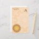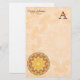 A mandala da renovação é um design intrincado da explosão do sol em cores amarelas e alaranjadas douradas brilhantes com toques do azul. Este design kaleidoscopic em dez pontos é cheio da textura, e dá a impressão de um sol ardente. - O design nestes artigos de papelaria está contra uma cor clara, fundo textured, aperfeiçoa para a correspondência da escrita e notas rápidas a outro. Inteiramente customizável com seu nome, um provérbio pequeno, cotação, ou título da empresa, e uma inicial do monograma. Uma ideia muito agradável do presente para aqueles que amor escrever a seus amigos e correspondentes, e aquelas que querem às notas do escritório de troca com estilo.