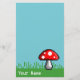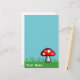 Um design summery da arte do pixel. Um cogumelo vermelho do agaric de mosca cresce em um prado da grama do pixel com céu azul. Mude "seu nome" para um nome ou outras palavras do costume.