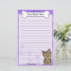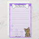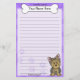 Artigos de papelaria coloridos do yorkshire terrier de Kawaii com um yorkie dos desenhos animados no canto direito mais baixo. A parcela superior pode imediatamente ser personalizada com seu nome dentro do osso grande do cachorrinho. O fundo da beira e do papel é roxo.