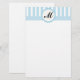 Artigos de papelaria feitos sob encomenda brancos azuis listrados do monograma