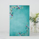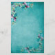 Um livro aberto do estilo do victorian com design bonito do rolo e embellished com os rosas cor-de-rosa e roxos contra um fundo da cerceta com um leve olhar da textura. Muito bonito.
