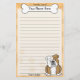 Artigos de papelaria ingleses coloridos do buldogue de Kawaii com uma raça do cão dos desenhos animados no canto direito mais baixo. A parcela superior pode imediatamente ser personalizada com seu nome dentro do osso grande do cachorrinho. O fundo da beira e do papel é alaranjado. Brown e o branco revestem a cor.