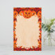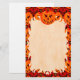 Jaque-o-lanterna cinzelada da abóbora com sorrir forçadamente fanged e os dois olhos vermelhos de incandescência. Design temático do Dia das Bruxas. Papel vazio dos artigos de papelaria com uma beira estilizado da chama.