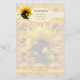 Girassol amarelo brilhante contra um teste padrão alaranjado do fundo dos girassóis. Artigos de papelaria customizáveis com área na parte superior para a informação do nome e do contato e no fundo para o endereço de Web site -- ou escolha seu próprio texto entrar.