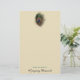 Esta folha de letra personalizada tem uma reprodução de uma pena colorida mão do pavão na parte superior. "da mesa de seu nome" é na parte inferior. A pena é verde azul e o marrom e o fundo são tan.