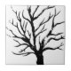 Impressão de lino preto e branco da silhueta de uma árvore automática.
