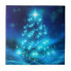 Um azulejo cerâmico com uma árvore de Natal decorada com vibrantes luzes de férias de luz azul-elétrica. Espumante e brilhando com alegria festiva.