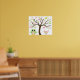 Este é um poster bonito e colorido para pendurar no quarto do seu filho. Apresenta folhas cor-de-rosa e verde numa árvore com uma coruja e um pássaro sentados por baixo.