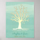 Simples, elegante, árvore de folha de ouro sem folha - para impressões digitais dos convidados, em combinação com ondas de água trendy verde menta.