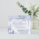 NOVO! Barato Leve Cartões de natal com um belo Feliz Natal em caligrafia rolante - numa moldura prateada - desenho abstrato de tinta alcoólica em tons de violeta empoeirada com cervo de silhueta em branco e uma árvore de inverno também em branco - mensagem personalizada no verso