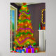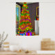 Uma árvore de Natal decorada na sala com muitos presentes de Natal debaixo da árvore. Esta é uma arte gerada por IA.