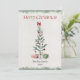 Espalhe um pouco de alegria de Natal com esta linda árvore de Natal Feliz Cartão de Natal! A frente apresenta uma árvore de Natal aquarela com presentes e você pode personalizá-la com seu nome ou nome de família e a data. No verso, há espaço para sua própria mensagem especial de feriado em um design de segundo plano correspondente. É uma maneira perfeita de enviar desejos calorosos aos seus entes queridos nesta temporada!