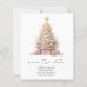 Árvore de Natal em Rose Gold com Orçamento Save the Date.. Um preço acessível, tamanho menor 4.5 x 5.6” semi brilho semelhante em espessura a um cartão postal. Há UM por folha, Uma ilustração de árvore festiva maravilhosa em aquarela, tipo de letra estilo manuscrito e minimalismo moderno. Um script informal não editável para as palavras Salve a Data e o resto do texto que você pode facilmente personalizar.
