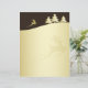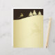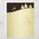 Ilustração elegante de Natal em ouro, com uma silhueta de ouro de renas e árvores com Feliz Natal em fundo castanho.