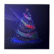 Árvore de Natal SlipperyJoe digital translúcida vermelha verde fitas azuis brilhando com energia festiva círculos concêntricos de luzes azuis para fora presença etérea quase holográfica luzes radiantes e faíscas fundo azul profundo presentes de orgulho gay atmosfera mágica emite feixes rastros de luz movimento e fluxo LGBTQIA