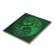 Este yin verde estilizado yang caracteriza uma árvore torcida que cresce do centro do design. Os ramos intrincados que estendem na parte superior do teste padrão são uma imagem invertida das raizes que penduram abaixo. As texturas de pedra ásperas terminam este design impressionante que é uma representação bonita do equilíbrio da natureza.