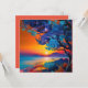 colorida árvore florida em tons de azul e roxo no lago no nascer do sol Arte AI por minx267