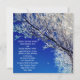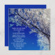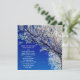 A bela fotografia de uma árvore maravilhosa coberta de geada faz um convite de casamento incrível. A geada cobriu as árvores criando uma bela terra maravilhosa do inverno. A lua ainda está no céu.