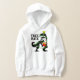 Esta camisola de capuz é uma T-Rex embrulhada em Luzes de Natal pode ser personalizada com o nome do seu filho