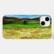 Paisagem da Toscana, pintura acrílica na canvas 2008 de cor, vibrante e expressiva beleza da paisagem italiana; campos brancos amarelos, céu azul, nuvens, linda flora de Verão, colinas, flores em verde claro, castanho, cores de Búlgaro Lumini (c)