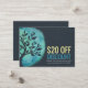 Elegante Modelos de Lealdade de cupão/Cartão de Certificado de Presente do Instrutor de Meditação Yoga Árvore Watercolor Studio Discount Coupon.