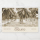 Nossas mini etiquetas personalizadas de design apresentam uma imagem de fazenda de palmeiras de coco na sépia marrom, para um mundo antigo e uma sensação tradicional combinada com texto simples e moderno, perfeito para suas garrafas de Coquito, uma bebida tradicional de coco porto-riquenha para o Natal e feriados!