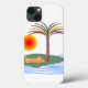 capas de iphone com meu vetor de verão design de uma palmeira, toalha de praia, sol laranja e ondas.