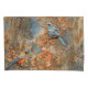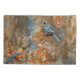 As árvores torres revelam folhas de outono a caírem sobre pássaros azuis contra um céu nublado para decoração domiciliar ou em tecido para vestuário ou outros projetos do Zazzle.