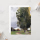 Imagem de arte de uma pequena vila com uma faixa de árvores. Pintura de Vintage de Boris Kustodiev.
