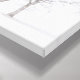 Tela impressa de uma imagem minimalista de uma fileira de árvores áridas durante uma nevasca no inverno em um fundo branco do mundo completamente nevado. Esta é uma imagem colorida, embora pareça b/w.