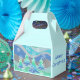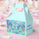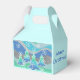 Uma paisagem de inverno moderna e estilizada com pinheiros foscos e flocos de neve espumantes. Favor da caixa com uma cinza verde, azul, prateada e branco personalizável para você personalizar com seu próprio texto, imagens e ideias. Imagem criada usando um desenho a lápis colorido melhorado digitalmente.
