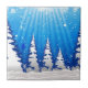 Uma ilustração da neve cobriu árvores de Natal com fundo azul com estrelas e feixes de luz. Bonito cena de neve de inverno.