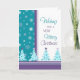 Feliz cartão de boas-vindas de Natal em tons na moda de turquesa e roxo, com árvores de Natal divertidas e design de flocos de neve, desejo aos seus amigos e família bem nesta temporada de festas com este charmoso cartão de boas-vindas.