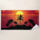 Árvores e toalha de praia tropicais do por do sol