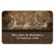 Artes metálicas legal e únicas Economizam o ímã Premium de data em marrom-escuro com um padrão e fundo de engrenagens de aço no topo e fundo de malha metálica no fundo. Este magnata super na moda é perfeito para um casamento temático com galos! Fácil de personalizar, basta adicionar os detalhes do seu casamento nos campos de texto fornecidos. Clique em "Personalizar" para encontrar opções adicionais de personalização.