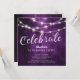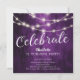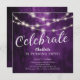 Luzes modernas de cordas celebram o convite de aniversário num fundo roxo. Ver a nossa correspondência para um toque especial extra.