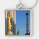 Estatuetas do Palais de Chaillot com torre Eiffel. Paris - 2008. Chaveiro quadrado.