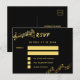 Um fundo preto, texto de ouro. Personalize e adicione a resposta por data. Traseira: design de cartão postal. Adicione seu nome e endereço de retorno. Fundo preto.