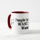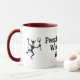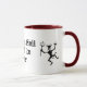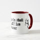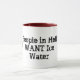 A caneca de café inscreida com o provérbio "pessoas no inferno QUER a água de gelo" e dois diabos danincing em ambos os lados da inscrição.