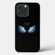 Asas claras, artísticas, de anjo azul sobre fundo preto. Asas de anjo.