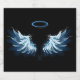 Asas claras, artísticas, de anjo azul sobre fundo preto. Asas de anjo.