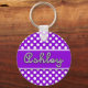 Chaveiro em pequenos pontos brancos em fundo roxo com o nome Ashley impresso.