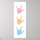 Decorar com amor! Este poster apresenta três sinais de ASL (American Sign Language) "I love you" em padrões bonitos e coloridos. Perfeito para decoração infantil ou decoração infantil.