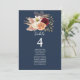 Ajude os convidados a encontrar seus lugares com este elegante cartão de assentos de casamento burgundy e azul-marinho. Com rosas em aquarela em burgundy, marfim e pêssego com grama pampas e folhagens em um fundo azul-marinho profundo, este cartão é perfeito para casamentos de outono e inverno. Personalize com o número da sua mesa e os nomes dos convidados para uma recepção lindamente organizada. Convites, menus, programas, cartões de lugar, números de mesa e sinais de boas-vindas correspondentes estão disponíveis em nossa coleção para um conjunto de casamento completo.