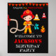A festa de boas-vindas do bombeiro é a poster do bombeiro. Este sinal de boas-vindas do Bombeiro é perfeito para receber seus convidados na sua festa de bombeiros! Um bom sinal de festas para a festa de aniversário de um jovem bombeiro, que inclui um bombeiro morena com mangueira de incêndio e algum equipamento de combate a incêndios. Soe o alarme e simplesmente edite este modelo fácil de usar no menu Personalização.