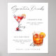 A tipografia elegante e moderna, preto e branco, bebe poster com cocktails de aquarelas. *Para adicionar coquetéis diferentes, como martini, uísque azedo, escurecimento por aperto, etc., clique no botão "editar usando a ferramenta design" para mudar as bebidas de acordo com suas necessidades. Ao clicar no "globo ocular" próximo a cada bebida na seção de camadas, ele os adicionará ao poster.