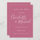 Projetado para coordenar com a nossa coleção de casamento Signature. Apresentando nomes de estilo de assinatura, este elegante borrego cor-de-rosa salva o cartão de data pode ser personalizado com suas informações especiais sobre o dia do casamento em caracteres brancos. Projetado por Thisnotme©