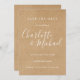 Apresentando nomes de estilo de assinatura, esta elegante kraft rusticida salva o cartão de data pode ser personalizada com suas informações especiais sobre o dia do casamento em caracteres brancos. Projetado por Thisnotme©
